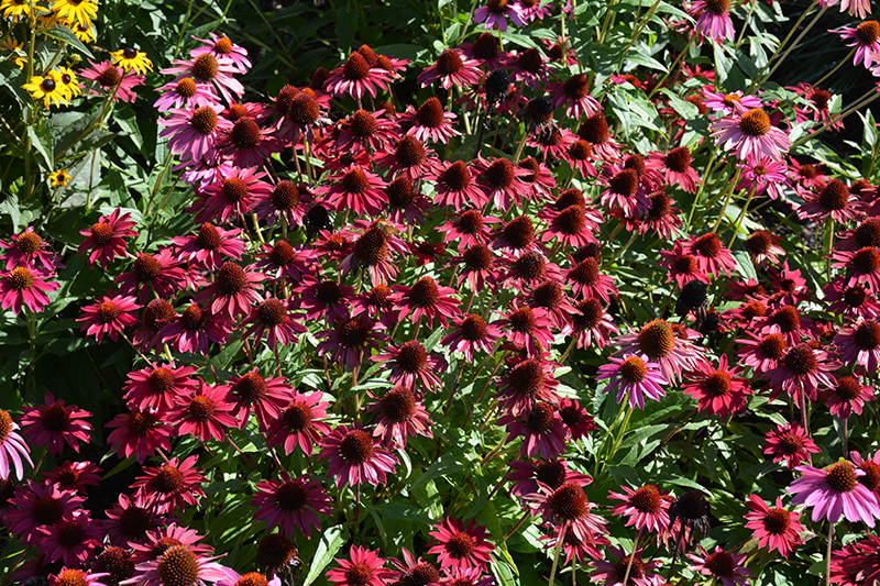 Sombrero® Baja Burgundy Coneflower will grow to be about 24 inches tall at maturity, with a spread of 20 inches. Its foliage tends to remain dense right to the ground, not requiring facer plants in front. It grows at a medium rate, and under ideal conditions can be expected to live for approximately 10 years. As an herbaceous perennial, this plant will usually die back to the crown each winter, and will regrow from the base each spring. Be careful not to disturb the crown in late winter when it may not be readily seen!