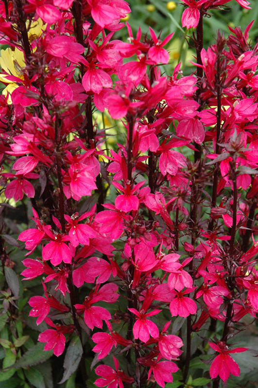 Starship™ Deep Rose Lobelia features showy spikes of rose flowers rising above the foliage from mid summer to early fall. The flowers are excellent for cutting. Its pointy leaves emerge burgundy in spring, turning green in colour with prominent coppery-bronze tips throughout the season.