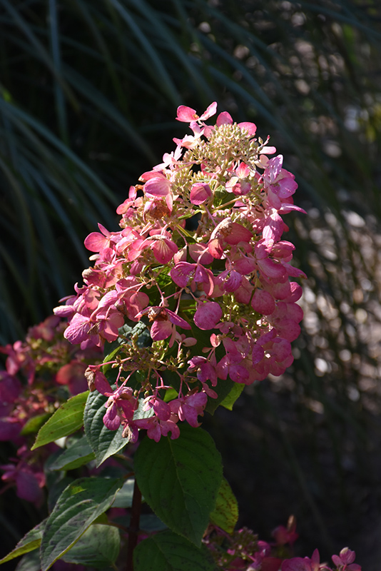 Diamond Rouge® Hydrangea features bold conical white flowers with pink overtones at the ends of the branches from early summer to late fall. The flowers are excellent for cutting. It has green deciduous foliage. The pointy leaves do not develop any appreciable fall colour.