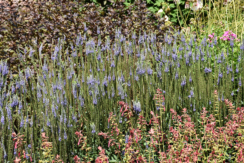 Blue Skywalker Speedwell will grow to be about 24 inches tall at maturity, with a spread of 18 inches. When grown in masses or used as a bedding plant, individual plants should be spaced approximately 16 inches apart. Its foliage tends to remain dense right to the ground, not requiring facer plants in front. It grows at a medium rate, and under ideal conditions can be expected to live for approximately 8 years. As an herbaceous perennial, this plant will usually die back to the crown each winter, and will regrow from the base each spring. Be careful not to disturb the crown in late winter when it may not be readily seen!