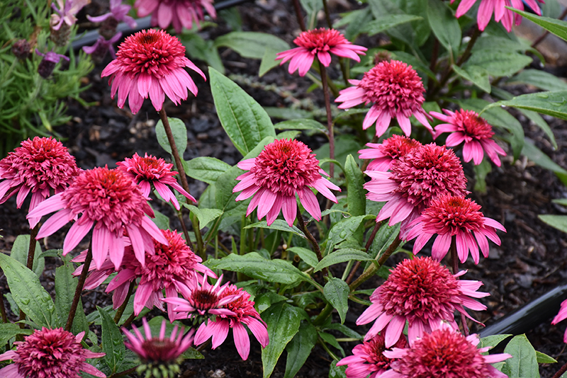 Double Scoop™ Watermelon Deluxe Coneflower has masses of beautiful lightly-scented double red daisy flowers with hot pink overtones and black eyes at the ends of the stems from late spring to late summer, which are most effective when planted in groupings. The flowers are excellent for cutting. Its pointy leaves remain green in colour throughout the season.
