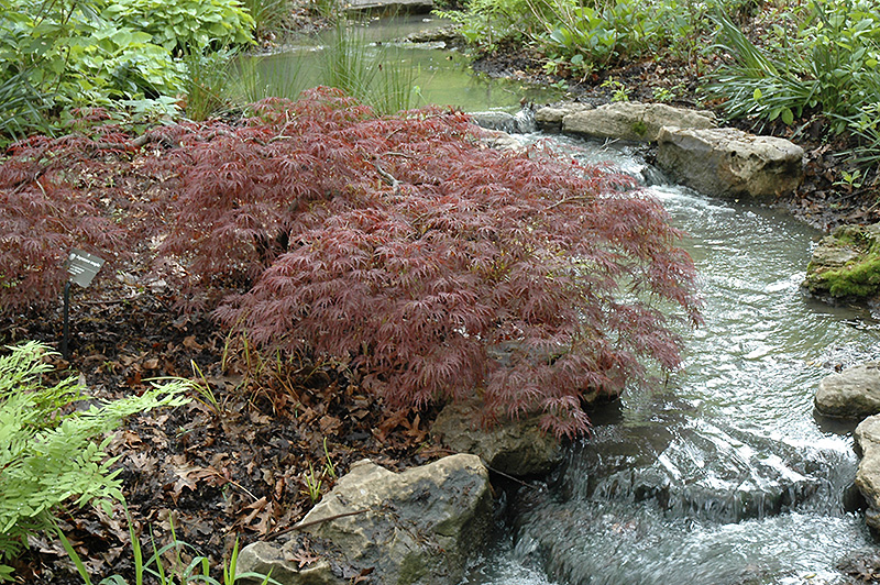 A vigorous grower with delicate, lacy burgundy leaves throughout summer turning brilliant crimson in fall; lovely tiered weeping habit on a dwarf plant, a perfect accent for the creative garden